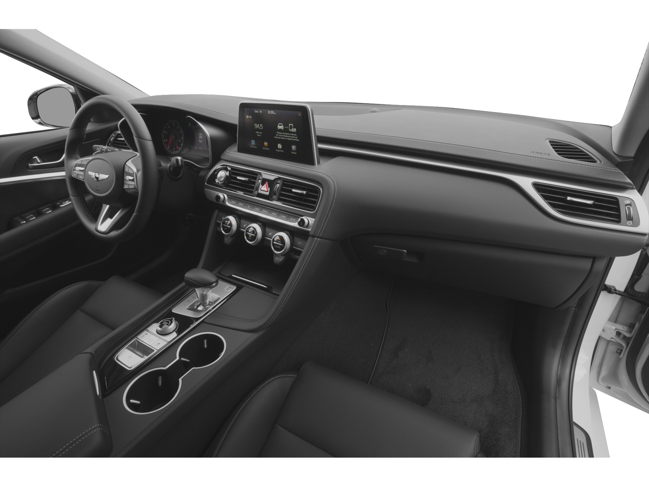 - Radio: AM/FM/SiriusXM/HD Audio System -inc: 6 channel internal amplifier, 6 speakers including subwoofer, 8" display audio, speed-sensing auto volume control, Apple CarPlay and Android Auto, Bluetooth® hands-free phone system, steering wheel audio, cruise and phone controls, 2 USB front: ( front console: data + charge / center console: charge only ), 1 USB rear (charge only), auxiliary input jack and Genesis Connected Services Telematics System